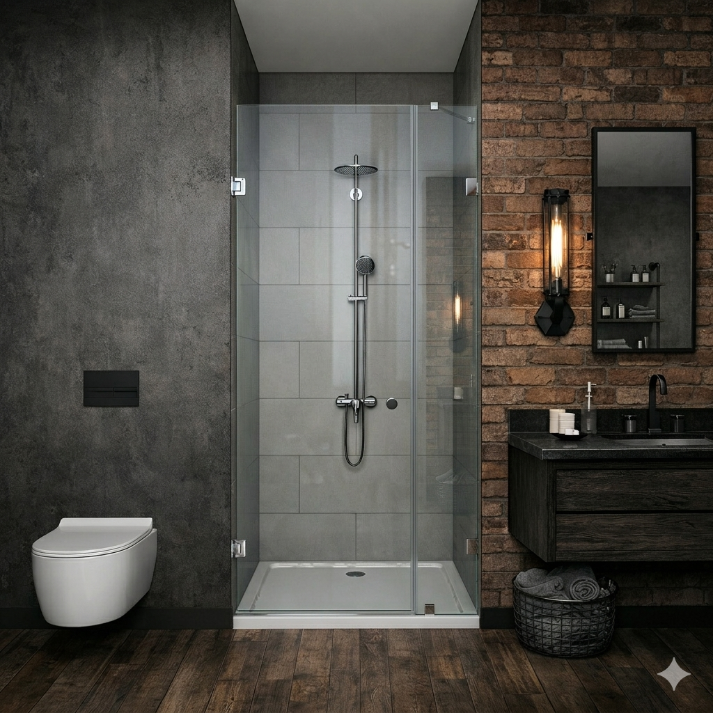 Стекло Crystal Vision 8 мм: Максимальная прозрачность без «зеленого» оттенка. На фоне кирпичной кладки или темного бетона такое стекло выглядит невесомым, не скрывая фактуру стен и сохраняя глубину пространства.