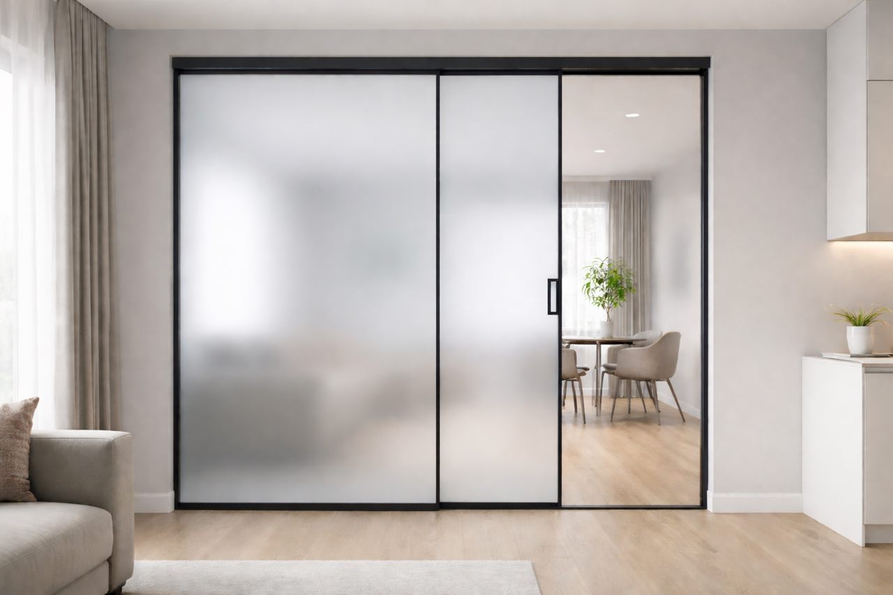 Раздвижная алюминиевая перегородка ALBA TROVARE Via Interio 2.0 из двух полотен с одним подвижным полотном